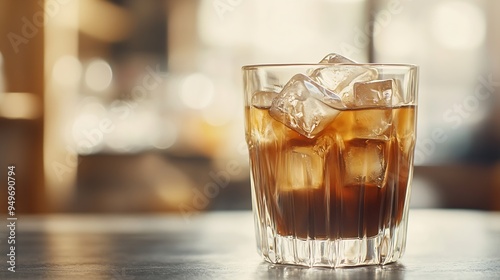 Iced coffee with ice cubes in a glass on the table : Generative AI
