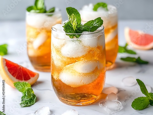 Iced tea with mint, grapefruit, and summer.
