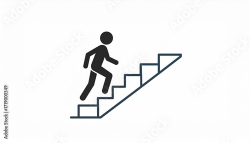 Icon illustration of a person climbing black stairs, symbolizing progress, ambition, and personal growth. Minimalist and bold design, perfect for success and development themes