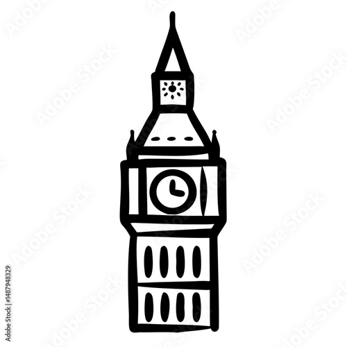 Icon of Big Ben tower sketch on transparent background representing travel