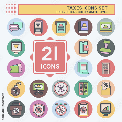 Icon Set Taxes. related to Money symbol. color mate style. design editable