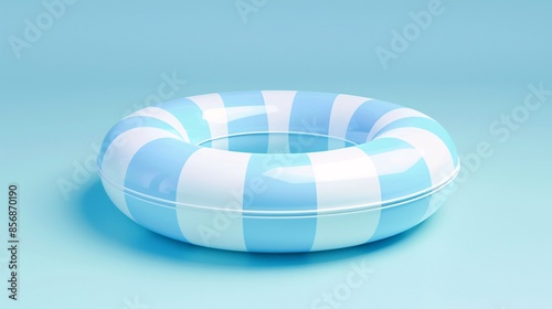 Iconic inflatable ring for a fun summer getaway at the beach or pool, rendered in 3D with a pastel blue striped design. Perfect for aqua parks or seaside adventures.