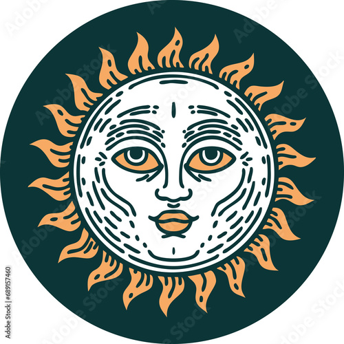 iconic tattoo style image of a sun with face
