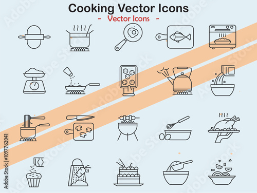 cooking, kitchen, vector, icon, food, culinary, utensil, ingredient, chef, preparation, cookery, tool, meal, kitchen utensile, epicure, baking, favor