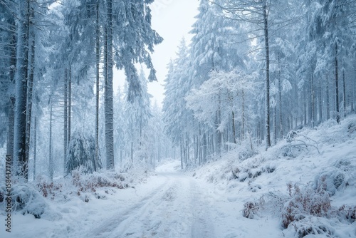 Icy European woodland post snowstorm Lovely winter season