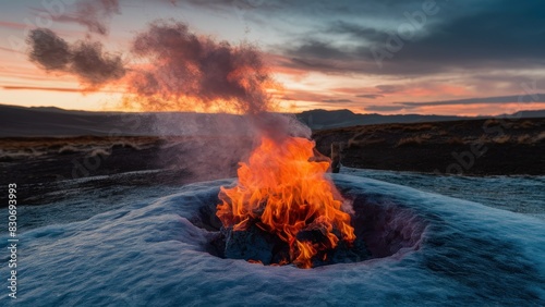 fire, ice, wind, desert, cracked, trapped, contrast, element, nature, power, survival, danger, beauty, abstract, surreal, landscape, photo, digital artwork