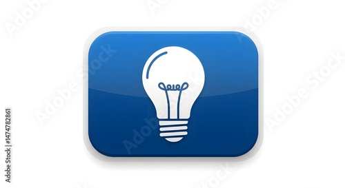 light bulb, icon, illuminating, glowing, generating, idea, innovation, buttons, app, interface, rounded, square, shape, glossy, blue, white, design, symbol, pictogram, creative, technology, solution, bright, concept, electrical, light, invention, electricity, power, flat, graphic, object, resource, illustration, element