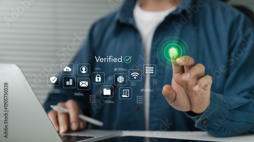 Identity verification, secure cloud storage, modern cybersecurity concepts for digital privacy, email, banking, and global connectivity.