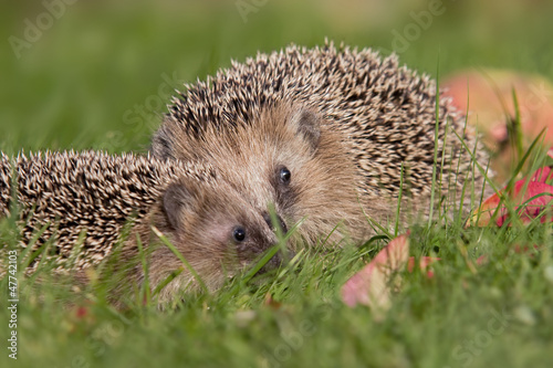 hedgehog, nature, animal, stinger, autumn, spiny, meadow, leaf, fruit, apple, green, face, nose, fur, leaf, autumn, look, fodder, snout, windfall, season, red, wildlife, pointed, mammal, winter, hibernation