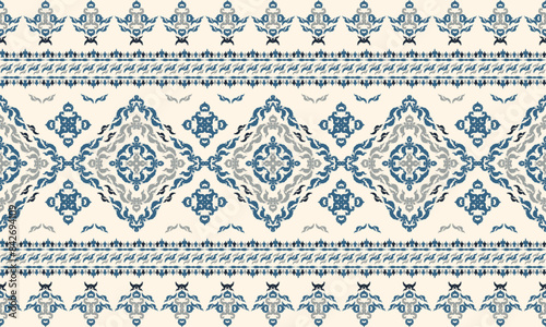 Ikat floral paisley embroidery on cream color background.Ikat ethnic oriental pattern traditional.Aztec style abstract vector illustration.design for texture,fabric,clothing,wrapping,decoration,sarong
