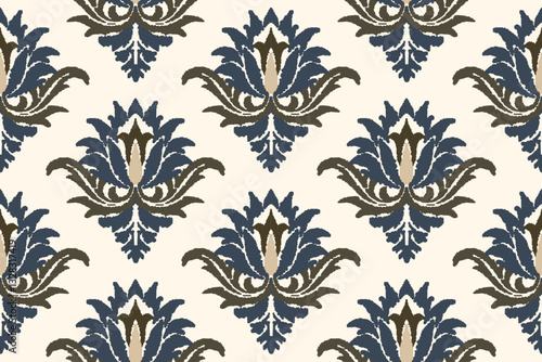 Ikat floral paisley embroidery on white background. Traditional ethnic ikat, aztec abstract vector pattern, seamless pattern in tribal, folk embroidery and mexican style.