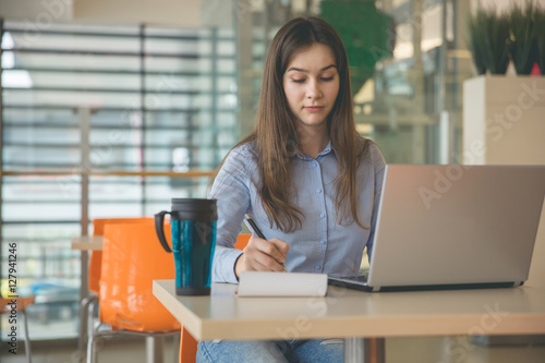 adult, beautiful, business, businesswoman, tied-up, cafes, caucasian, diligent, ethnicity, expression, face, fashion, female, focused, formal, front, girl, horizontal, indoor, information, inside, intent, interior, lady, laptop, life, looking, model, modern, notebook, notepad, note, 1, online, outfit, person, pretty, remote, shirt, sitting, student, studying, style, technology, wireless, woman, working, writing, young