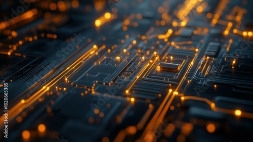 circuit, board, chips, processor, electronic, technology, digital, component, hardware, line, wire, connection, datum, network, glow, light, orange, yellow, dark, abstract, pattern, background, futuristic, modern, design, innovation, computing, power, signal, electrical, system, microchip, motherboard, computer, science, engineering, industry, future, automation, artificial, intelligence, deep, learning, three-dimensional, render, detail, texture, surface
