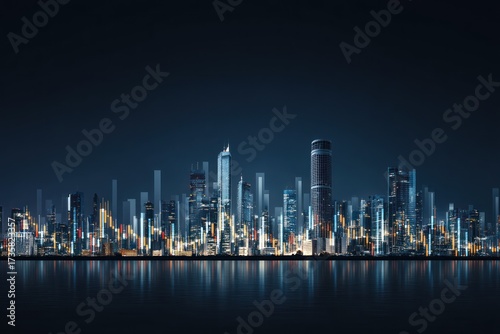 city landscape, night, building, illuminated, city lights, datum, visualisation, abstract, technology, modern, water, digital, urban, skyscraper, architecture, horizon, business, financial, information, communication, development, infrastructure, growth, analysis, network, future, artificial intelligence, innovation, connectivity, global, abstract background, no people