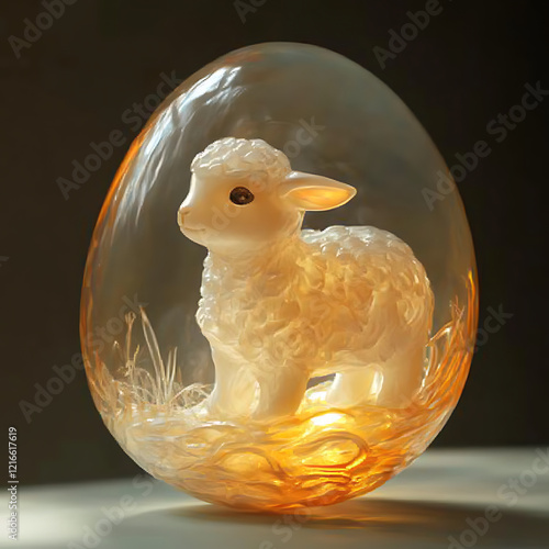 lamb, sheep, figurine, easter, egg, glasses, transparent, light, illuminated, spring, cute, adorable, animal, baby, fluffy, wool, white, delicate, gentle, peaceful, serene, artwork, art, craft, sculpture, decoration, ornament, home decor, gift, present, resin, collectable, whimsical, charming, pastoral, innocent