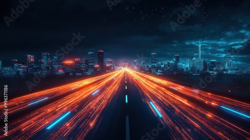 futuristic, road, night, advanced, architecture, glowing, pathway, city, skyline, view, technology, modern, urban, landscape, innovation, design, clarity, illuminated, setting, digital, art, city landscape, future, perspective, development, engineering, infrastructure, vibrant, colours, surreal, fantasy, city landscape