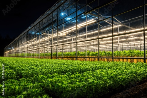 agriculture, plant, crop, farming, green, glasses, structure, light, greenhouse, night, illumination, indoor, growth, cultivation, produce, vegetable, hydroponics, technology, industrial, landscape, row, field, energy, efficiency, sustainable, environment, building, architecture, artificial, inside, background, darkness, perspective, detail, system, growing, illuminated, lighting, vertical, vibrant, clean, warm, long, arrangement
