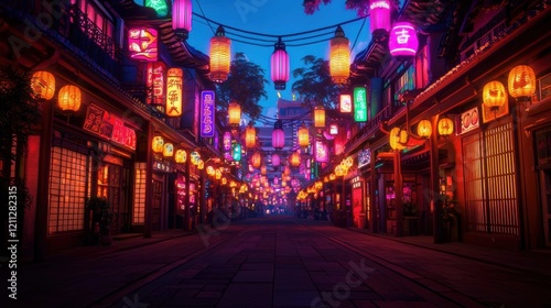 Illuminated Night Street Vibrant Lanterns Warm Glow