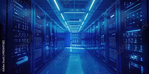 illuminated, server, room, vibrant, blue, machinery, datum, technology, equipment, computer, server, network, storage, cable, light, electronic, information, system, hardware, infrastructure, memory, processing, energy, modern, innovation, digital, computing, communication, connectivity, software, design, automated, professional, cloud, cyber, workstation, control, environment, operation, management, circuit, efficiency, performance