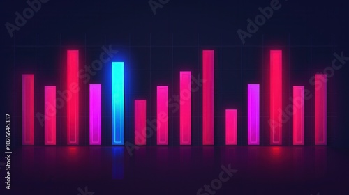 Illuminated Sound Waves, vibrant equalizer bars pulse in a dimly lit space, showcasing a sleek flat design that captures the energy and rhythm of music in motion