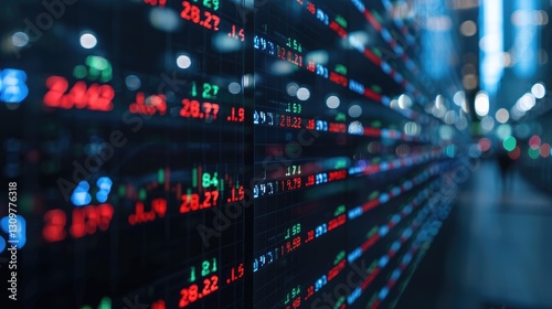 finance, market, datum, stock, exchange, investment, economy, business, trade, number, information, screen, digital, value, price, graph, chart, trading, financial, share, growth, decayed, analysis, monitor, display, wall, abstract, background, technology, modern, bright, colours, red, green, blue, light, bokeh, depth, sharpened, blurred, perspective, motion, pattern, corridor, industry