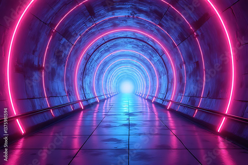 tunnel, light, journey, artwork, futuristic, illuminated, wide, design, mystery, visual, exploration, serene, colourful, high-coloured, movement, aesthetic, surreal, unique, inspiration, wonder, innovative, illusion, aethereal, dreamlike, contrast
