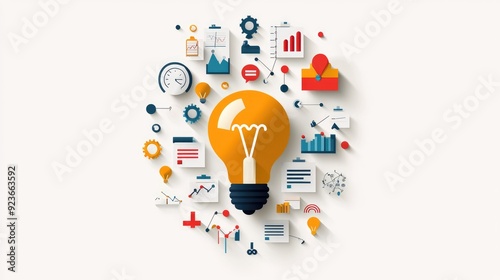 Illuminating Insights: 3D Light Bulb with Data and Graphs Driving Growth - Flat Design Illustration, Generative Ai