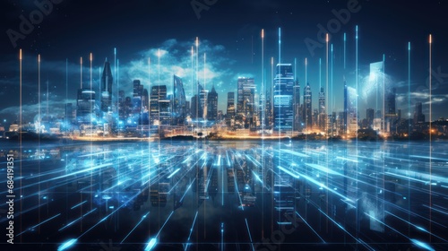 Illustrate the abstract resilience in IT City landscapes, portraying the adaptive and responsive features that safeguard against disruptions