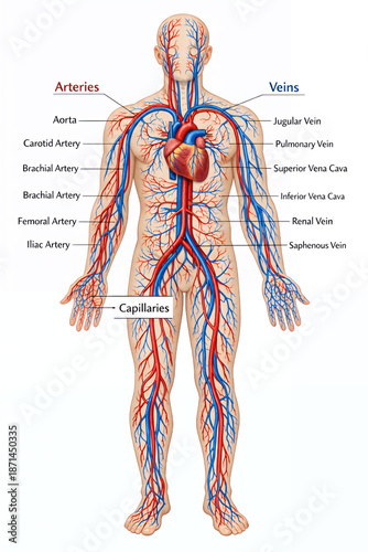 Illustrated Human Circulatory System Diagram Showing Arteries Veins and Capillaries