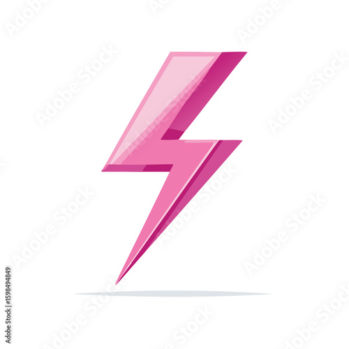 Illustrated pink thunderbolt icon, graphic lightning bolt symbol, high voltage power flash, bright energy sign