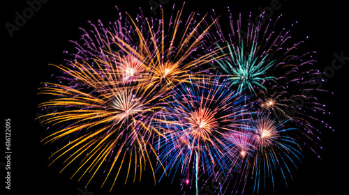 illustration beautiful fireworks celebration on isolated black background