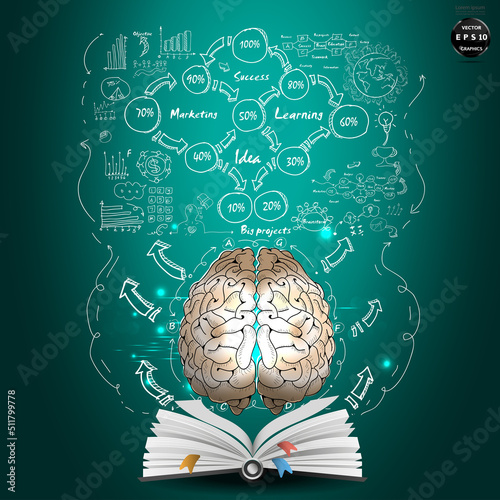 Illustration business.design modern idea and concept think creativity. for brainstorm,Social network,success,plan,think,search,analyze,communicate, futuristic idea innovation technology.