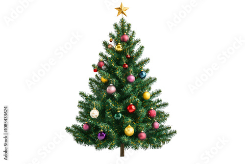 illustration Christmas fir tree decorated with baubles clipart on white background