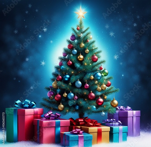 christmas, fir, light, environment, december, illustration, ai, shaft, gleam, party, family, tradition, religon, jesus christ, star, twinkling, gift, offer, christmas bauble, ball, champaign, garland, winter, magic, night, evening, farmland