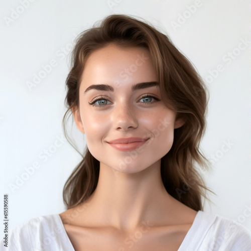 Illustration, Generative AI. A young beautiful woman with excellent skin and natural makeup.