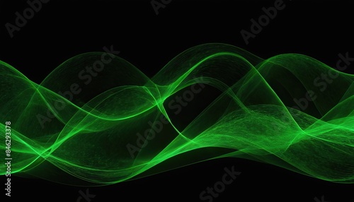 Illustration of a beautiful abstract green wave on black background.