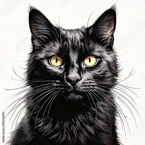 black cat, illustration, white background, scarey, dark, skittish, face, horror, evil, portrait, animal, cat, animal, cat, eye, black