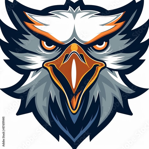 eagle, head, beak, gaze, determined, powerful, fierce, bird of prey, bird, wing, feather, talon, claw, plumage, mascot, logotype, emblem, symbol, illustration, graphic, digital, art, design, creativity, predator, aggressive, strong, authority, freedom, sky, nature, wildlife, wilderness, majestic, proud, noble, fearless, brave, courageous, heroic, patriotic, national, sport, team, competition, athletic, power