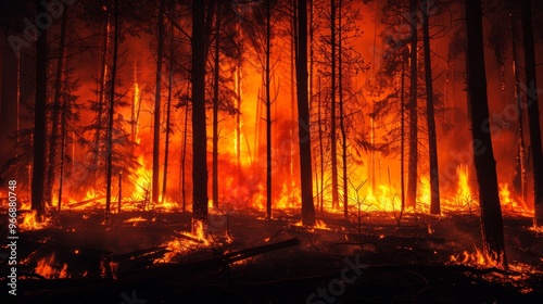 illustration of a forest fire consumed by flames