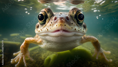 Illustration of a frog underwater, generative ai