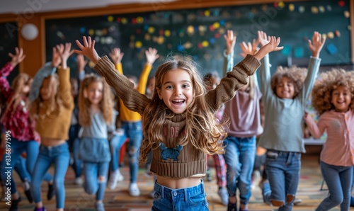 illustration, children, classroom, celebrate, concept, vacation, fun, joy, student, adieu, summer, rest, recess, together, happiness, togetherness, education, learning, recreation, recreational, completion, meeting, party, enjoyment