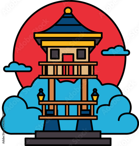 illustration of a japanese pavilion