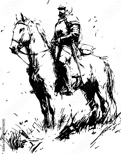 Illustration of a Knight on Horseback in Black and White