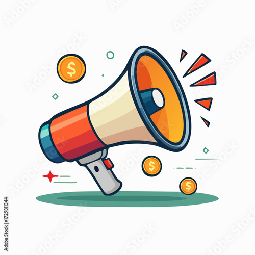 megaphone, communication, advertising, business, marketing, illustration, coin, money, finance, success, symbol, announcement, promotion, speech, loudspeaker, speaker, icon, signs, concept, vector, graphic, design, isolated, white, background, currency, investment, wealth, growth, profit, income, market, economy, strategy, campaign