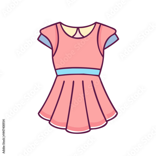 dress, pink, blue, sash, sleeve, fashion, apparel, garment, clothing, skirt, top, collar, outfit, style, wear, fabric, textile, design, illustration, cartoon, cute, girlie, trendy, modern, casual attire, formal, party, summer, spring, clothes rack, icon, clip art, drawing, vignetting, vector, graphic, image, artwork, element, object, isolated, background, pretty, elegant, stylish