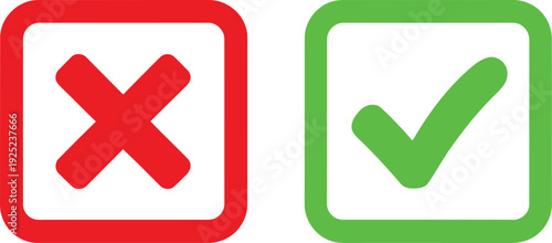 illustration, red, cross, green, check, mark, square, box, incorrect, correct, action, symbol, digital, design, icon, signs, positive, negative, feedback, validation, error, success, approval, rejection, indicator, visual, communication, graphic, element
