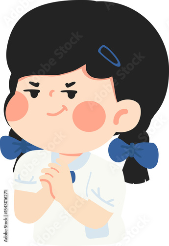 smirking, schoolgirl, cartoon, illustration, student, girl, uniform, anime, brash, sassy, confident, classroom, teenage, cute, mischievous, school, pose, expression, character, playful, emotion, coiffure, backpack, drawing, vector, flat, colourful, comic, art, clever, young, youth, attitude, smile, eye, skirt, blouse, shoe, standing, sitting, doodle, learning, charming, adorable, bold, stylish, animated