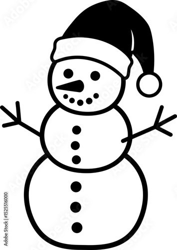snowman, winter, hat, snow, christmas, holiday, cold, season, december, festive, celebration, frost, new year, decoration, white, black, cartoon, drawing, art, clip art, graphic, design, icon, symbol, image, vector, outline, illustration, happy, cute, isolated, element, style, simple, santa