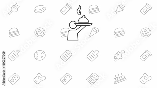 silhouette, waiter, dish, food, utensil, burger, donut, ice cream, salt, pepper, meat, chopping board, steak, egg, dumpling, flames, serving, eatery, kitchen, cooking, sandwich, pastry, dessert, poultry, seasoning, beef, pork meat, lamb, fish, seafood, vegetable, fruit, dairy, bread, grain, sauce, spice, oil, vinegar, herb