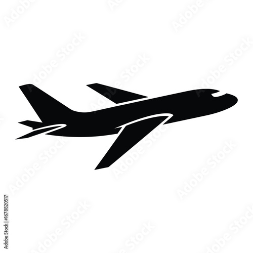 Illustration of an airplane in flight, isolated on white background, representing air travel, aviation industry, and modern transportation methods